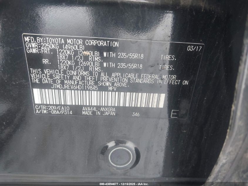 2017 TOYOTA RAV4 HYBRID 2017 року Гибрид, 2.5, Полный привод, vin - JTMDJREV6HD119845 из США