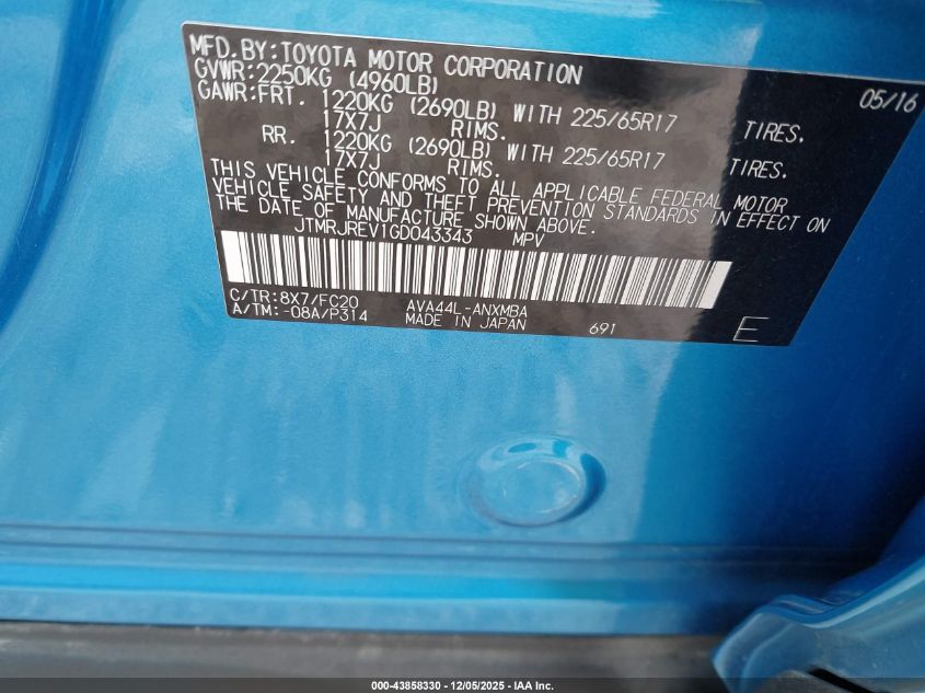 2016 TOYOTA RAV4 HYBRID 2016 року Гибрид, 2.5, Полный привод, vin - JTMRJREV1GD043343 из США