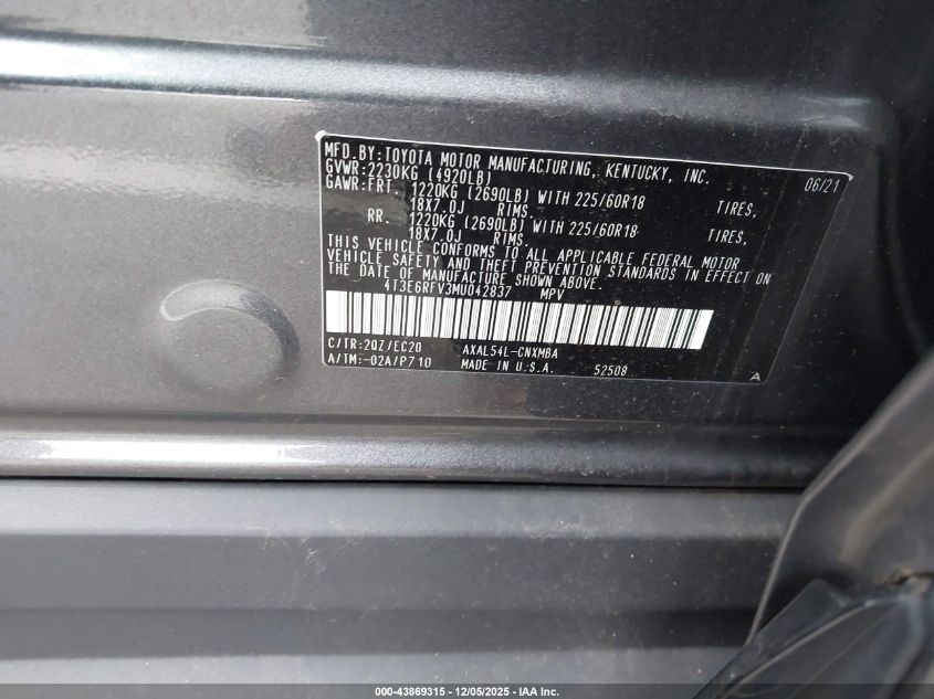 2021 TOYOTA RAV4 HYBRID 2021 року Гибрид, 2.5, Полный привод, vin - 4T3E6RFV3MU042837 из США