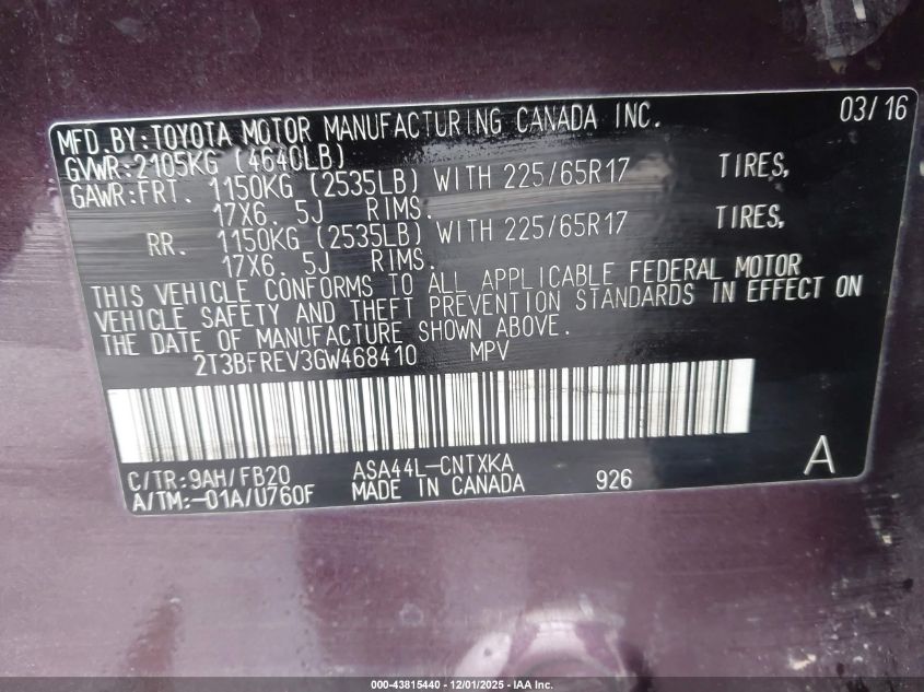 2016 TOYOTA RAV4 2016 року Бензин, 2.5, Полный привод, vin - 2T3BFREV3GW468410 из США