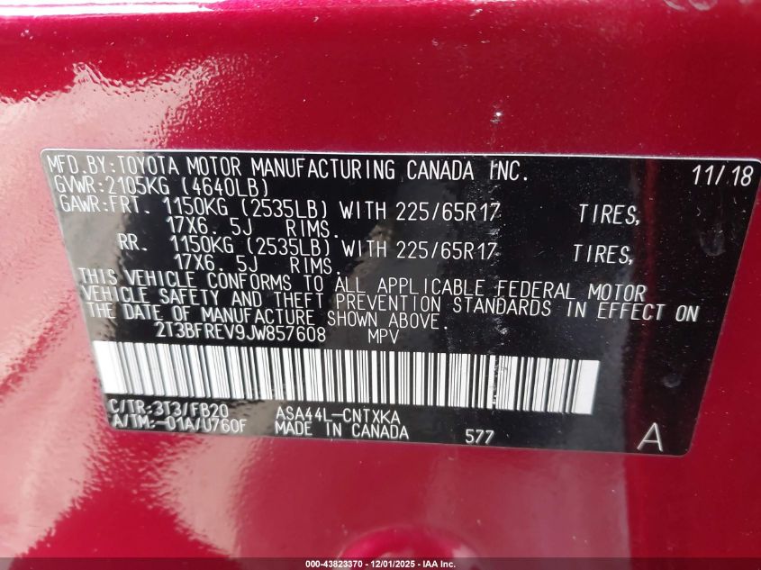 2018 TOYOTA RAV4 2018 року Бензин, 2.5, Полный привод, vin - 2T3BFREV9JW857608 из США