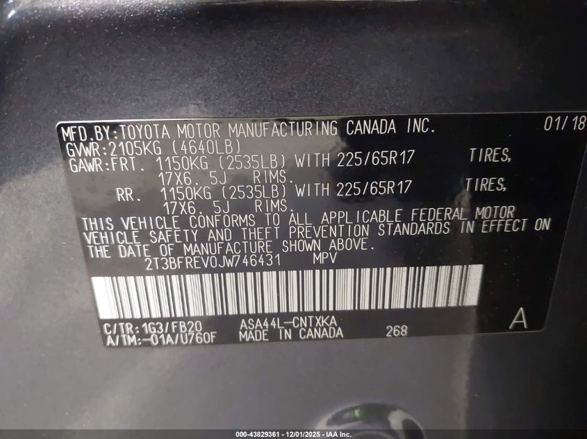 2018 TOYOTA RAV4 2018 року Бензин, 2.5, Полный привод, vin - 2T3BFREV0JW746431 из США