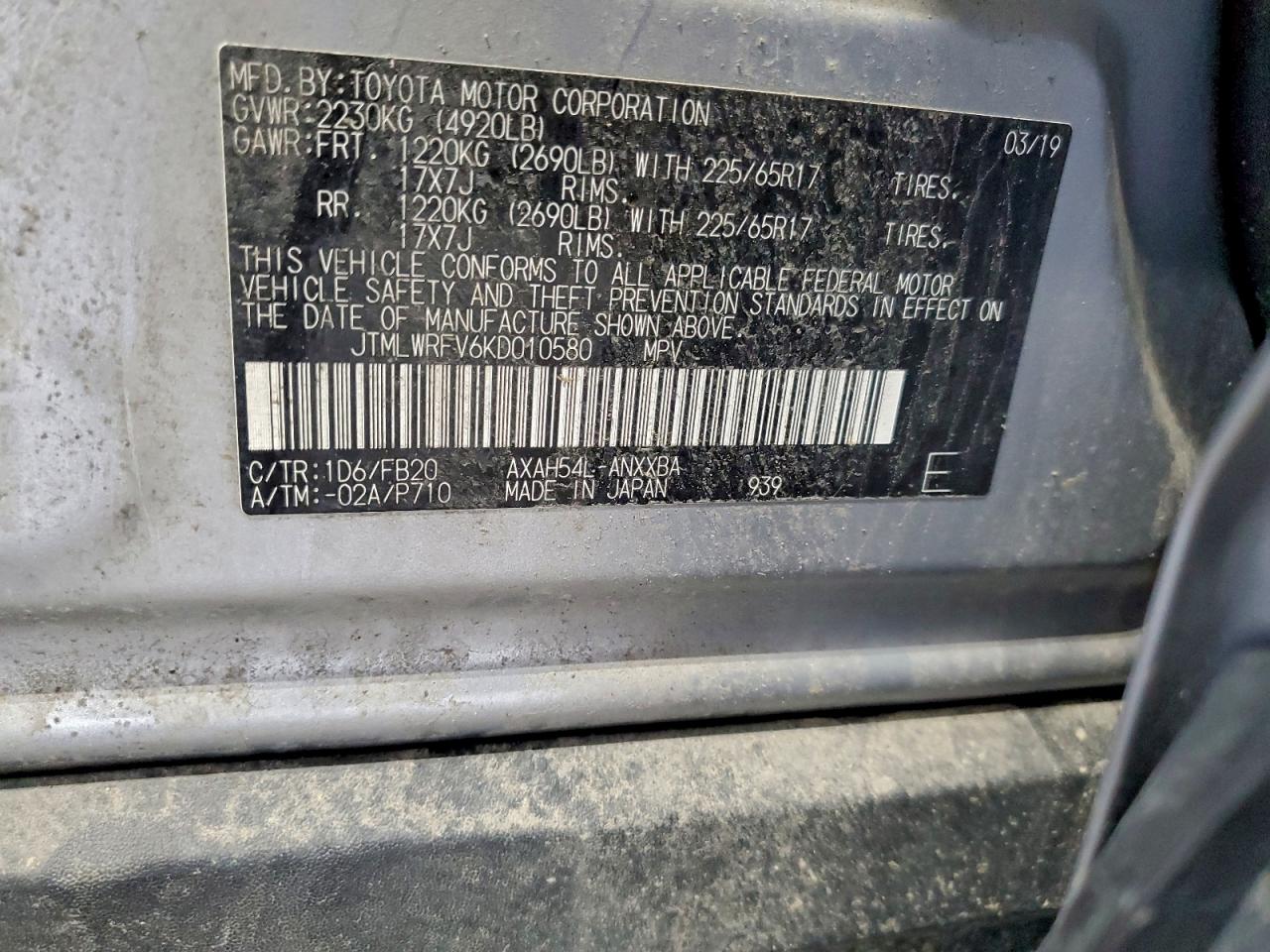 Цвет СерыйЦилиндры 4Привод Полный приводVIN JTMLWRFV6KD010580Состояние Заводится и едет (проверено)Повреждения Передняя или задняяДата аукциона 2025-12-08 AutoRIA