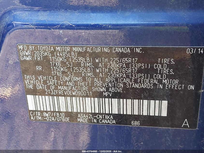 2014 TOYOTA RAV4 2014 року Бензин, 2.5, Передний привод, vin - 2T3ZFREV0EW090011 из США