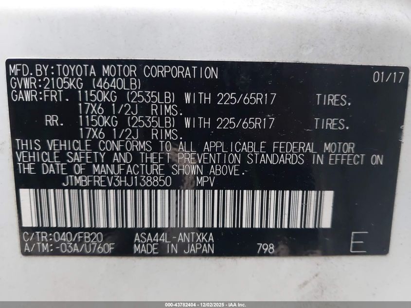2017 TOYOTA RAV4 2017 року Бензин, 2.5, Полный привод, vin - JTMBFREV3HJ138850 из США