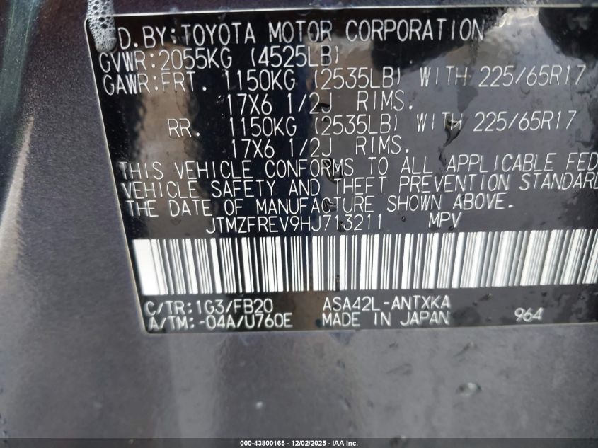 2017 TOYOTA RAV4 2017 року Бензин, 2.5, Передний привод, vin - JTMZFREV9HJ713211 из США