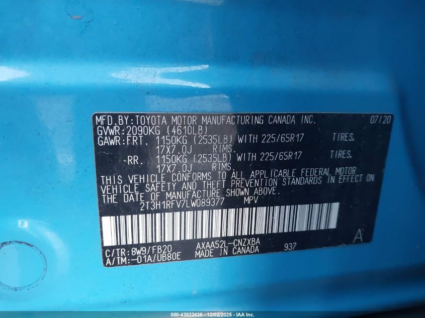 2020 TOYOTA RAV4 2020 року Бензин, 2.5, Передний привод, vin - 2T3H1RFV7LW089377 из США