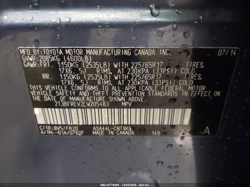 2014 TOYOTA RAV4 2014 року Бензин, 2.5, Полный привод, vin - 2T3BFREV2EW205483 из США