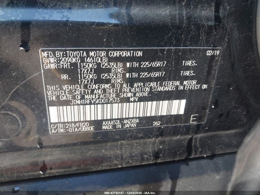 2019 TOYOTA RAV4 2019 року Бензин, 2.5, Передний привод, vin - JTMH1RFV5KD017573 из США