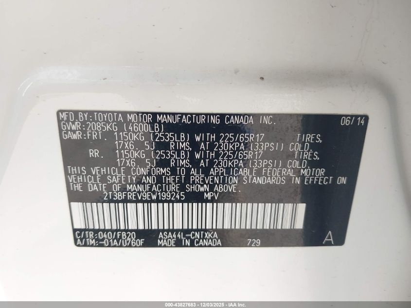 2014 TOYOTA RAV4 2014 року Бензин, 2.5, Полный привод, vin - 2T3BFREV9EW199245 из США