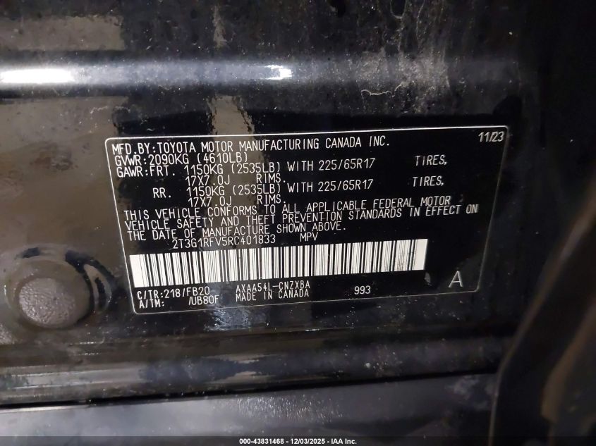 2024 TOYOTA RAV4 2024 року Бензин, 2.5, Полный привод, vin - 2T3G1RFV5RC401833 из США