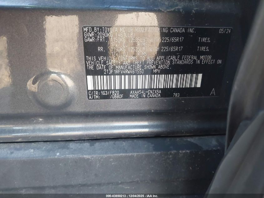 2024 TOYOTA RAV4 2024 року Бензин, 2.5, Полный привод, vin - 2T3F1RFV4RW461550 из США