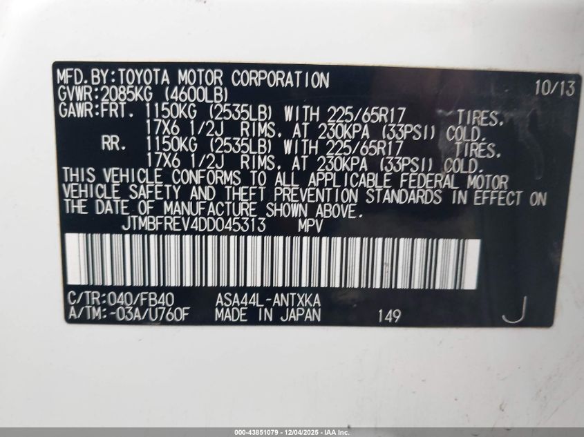 Цвет БелыйЦилиндры 4Привод Полный приводVIN JTMBFREV4DD045313Состояние Заводится и едет (проверено)Повреждения Передняя или задняя AutoRIA