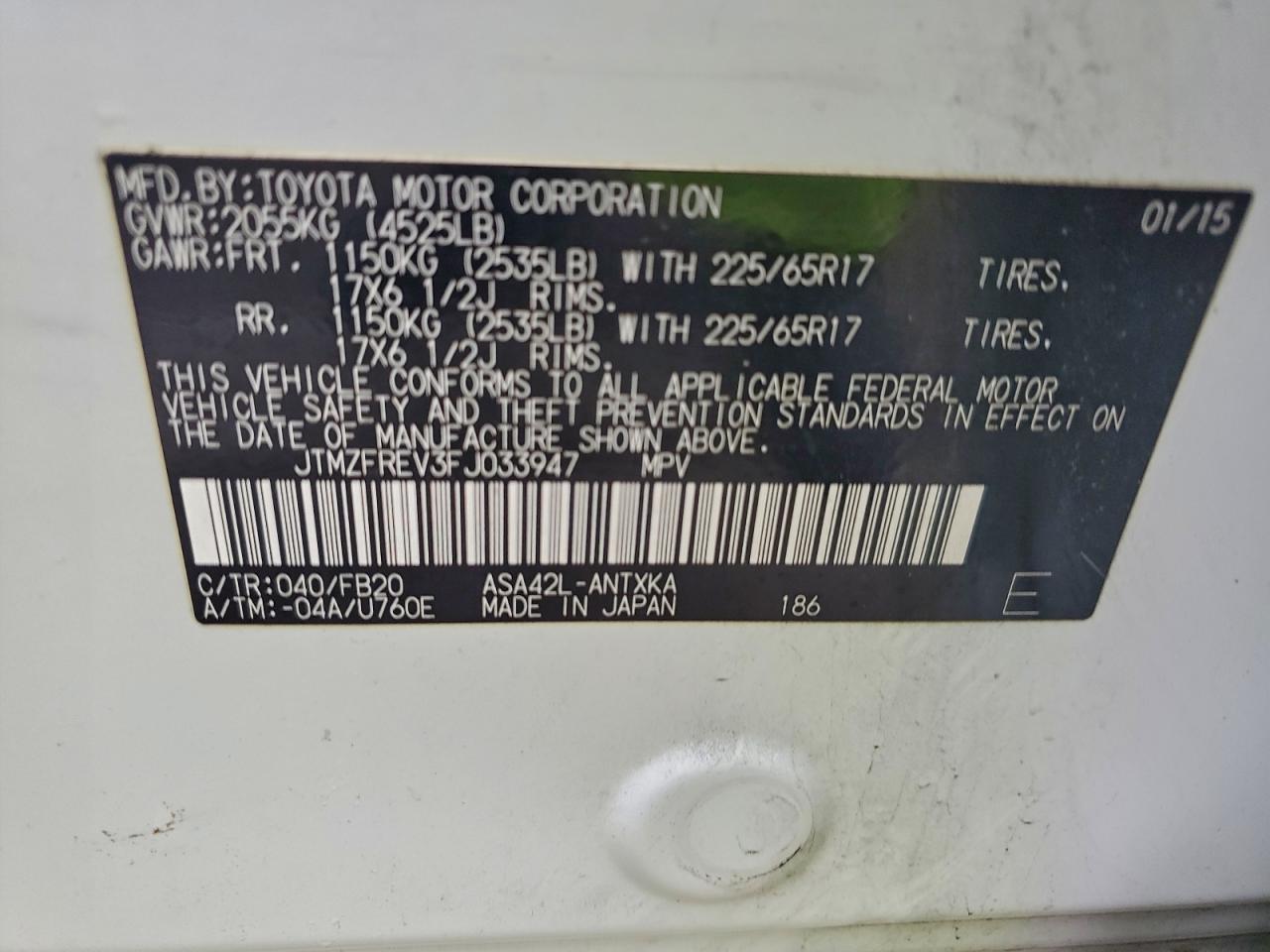 Цвет БелыйЦилиндры 4VIN JTMZFREV3FJ033947Состояние Заводится и едет (проверено)Повреждения Задняя AutoRIA