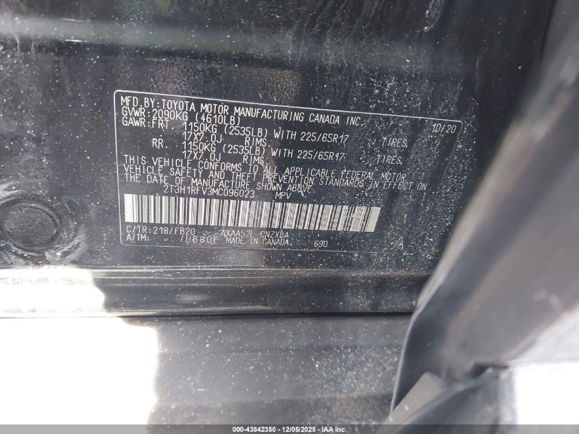 2021 TOYOTA RAV4 2021 року Бензин, 2.5, Передний привод, vin - 2T3H1RFV3MC096023 из США
