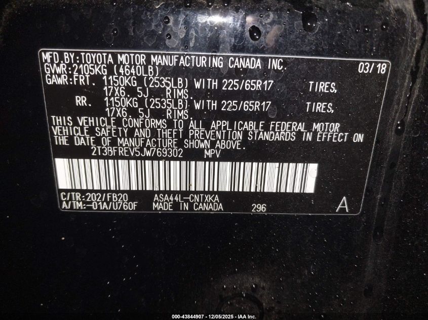 2018 TOYOTA RAV4 2018 року Бензин, 2.5, Полный привод, vin - 2T3BFREV5JW769302 из США