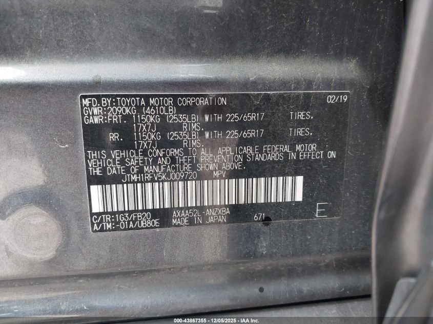 2019 TOYOTA RAV4 2019 року Бензин, 2.5, Передний привод, vin - JTMH1RFV5KJ009720 из США