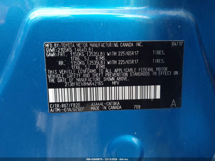 2017 TOYOTA RAV4 2017 року Бензин, 2.5, Полный привод, vin - 2T3BFREV8HW642165 из США