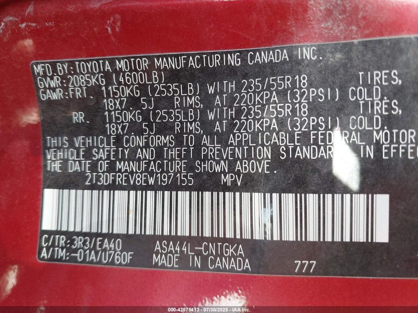 Цвет КрасныйЦилиндры 4Привод Полный приводVIN 2T3DFREV8EW197155Состояние Заводится и едет (проверено)Повреждения Левая сторонаДата аукциона 2025-12-09 AutoRIA