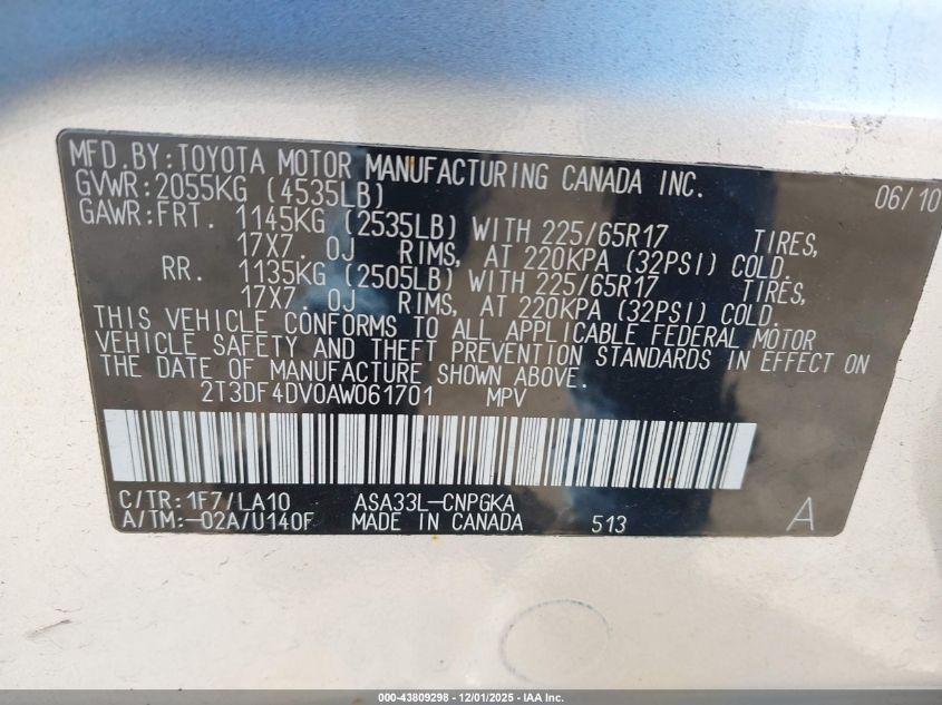 2010 TOYOTA RAV4 2010 року Бензин, 2.5, Полный привод, vin - 2T3DF4DV0AW061701 из США