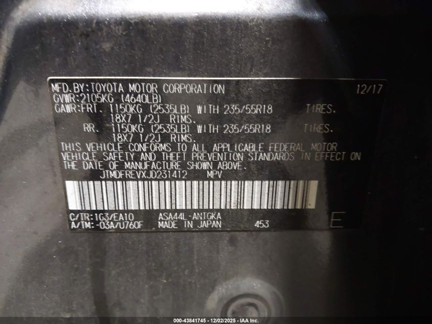 2018 TOYOTA RAV4 2018 року Бензин, 2.5, Полный привод, vin - JTMDFREVXJD231412 из США