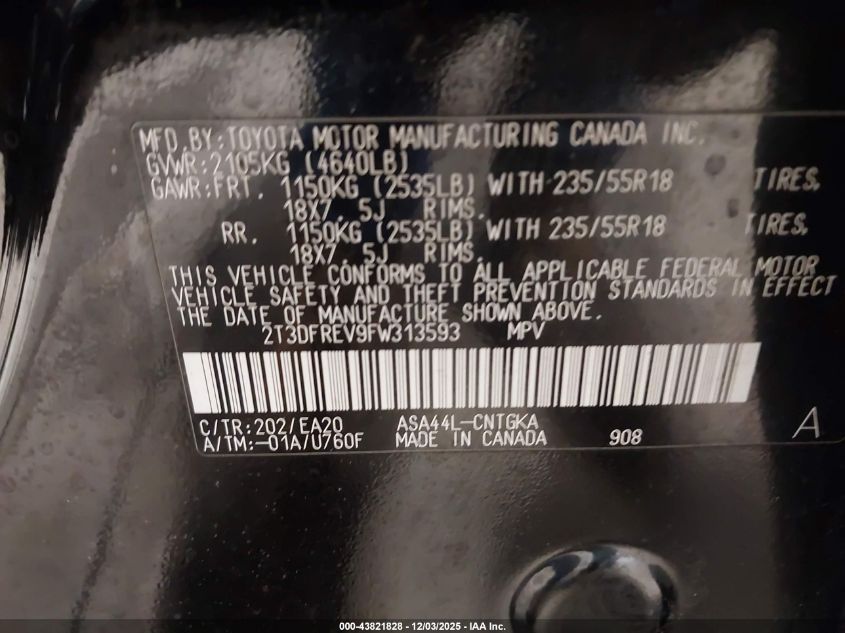 2015 TOYOTA RAV4 2015 року Бензин, 2.5, Полный привод, vin - 2T3DFREV9FW313593 из США