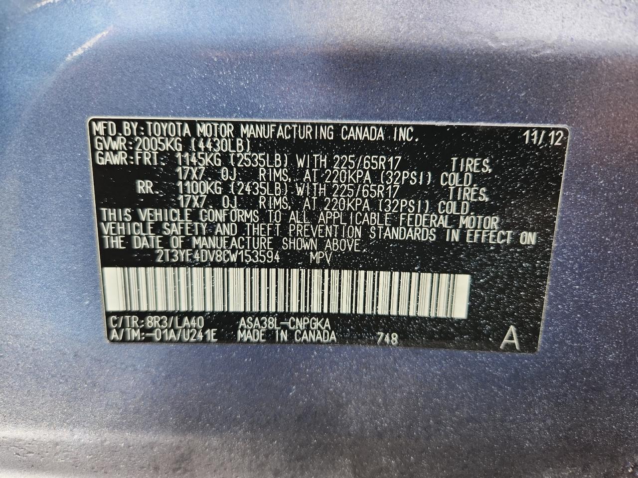 Цвет СинийЦилиндры 4VIN 2T3YF4DV8CW153594Состояние Заводится и едет (проверено)Повреждения По бокам AutoRIA
