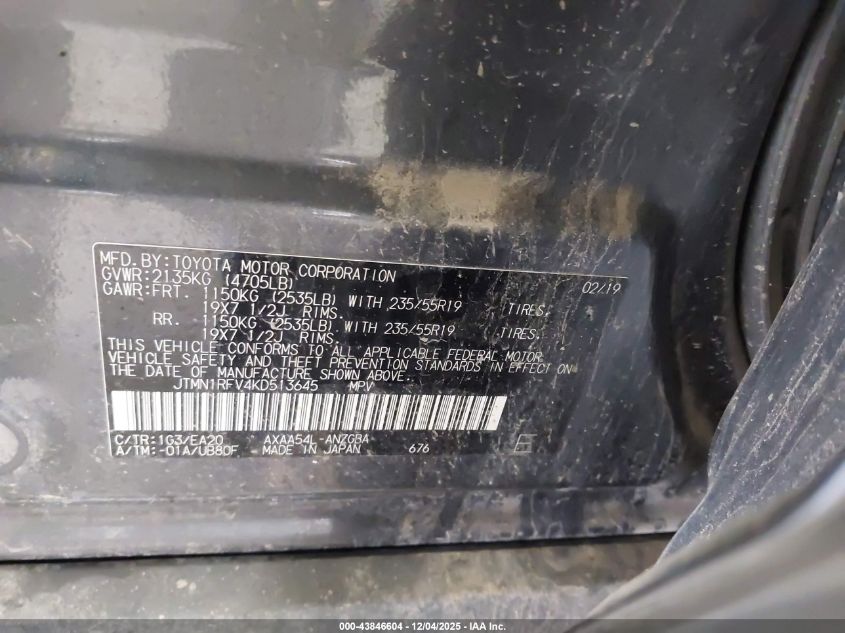 2019 TOYOTA RAV4 2019 року Бензин, 2.5, Полный привод, vin - JTMN1RFV4KD513645 из США