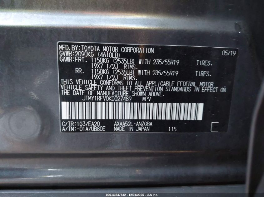 2019 TOYOTA RAV4 2019 року Бензин, 2.5, Передний привод, vin - JTMY1RFV0KD027489 из США