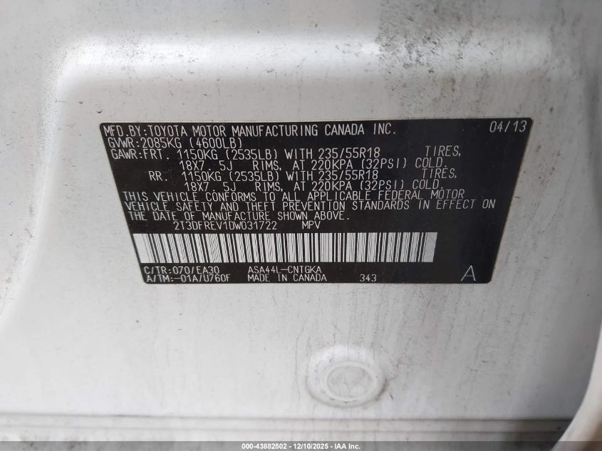 2013 TOYOTA RAV4 2013 року Бензин, 2.5, Полный привод, vin - 2T3DFREV1DW031722 из США