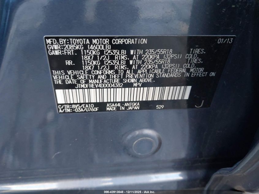 2013 TOYOTA RAV4 2013 року Бензин, 2.5, Полный привод, vin - JTMDFREV4DD004382 из США