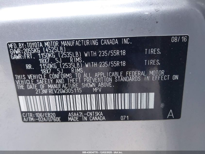 2016 TOYOTA RAV4 2016 року Бензин, 2.5, Передний привод, vin - 2T3NFREV2GW305115 из США