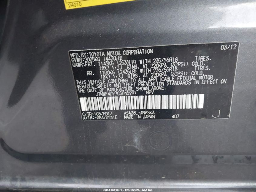 2012 TOYOTA RAV4 2012 року Бензин, 2.5, Передний привод, vin - JTMWF4DV7C5045997 из США