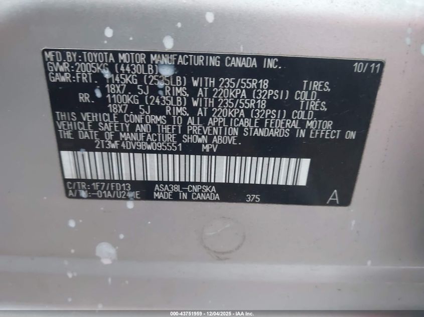 2011 TOYOTA RAV4 LIMITED