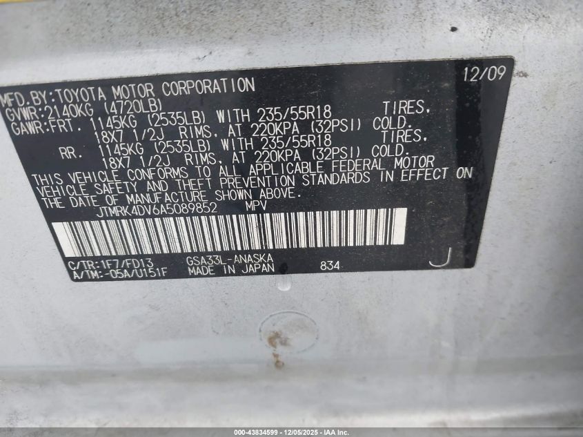 2010 TOYOTA RAV4 2010 року Бензин, 3.5, Полный привод, vin - JTMRK4DV6A5089852 из США
