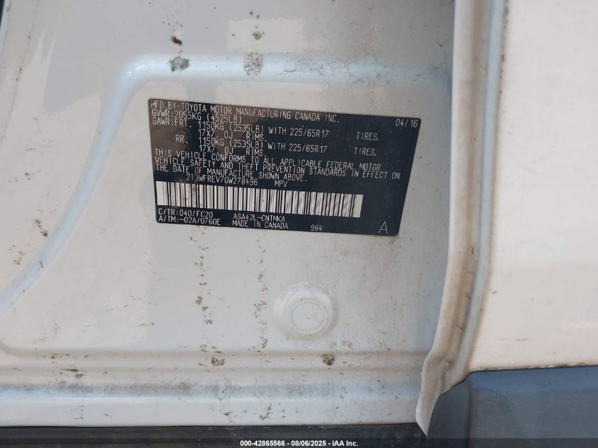 2016 TOYOTA RAV4 2016 року Бензин, 2.5, Передний привод, vin - 2T3WFREV7GW278496 из США
