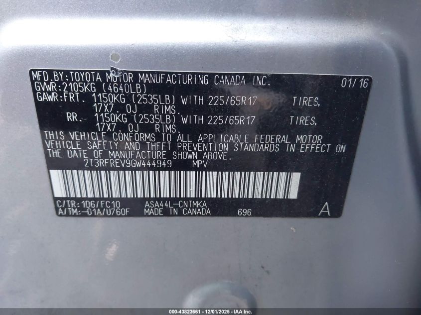 2016 TOYOTA RAV4 2016 року Бензин, 2.5, Полный привод, vin - 2T3RFREV9GW444949 из США