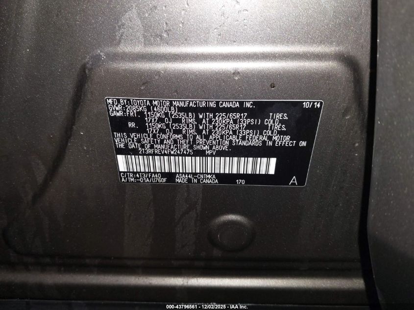 2015 TOYOTA RAV4 2015 року Бензин, 2.5, Полный привод, vin - 2T3RFREV4FW247475 из США