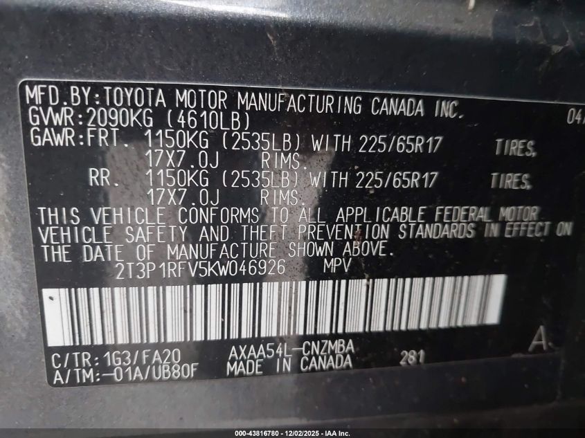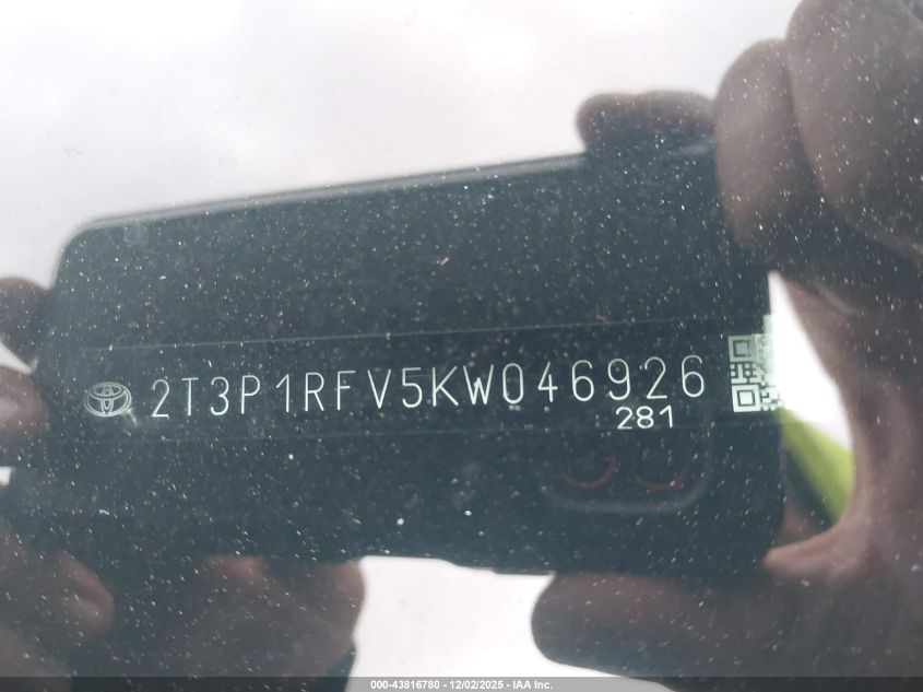 2019 TOYOTA RAV4 2019 року Бензин, 2.5, Полный привод, vin - 2T3P1RFV5KW046926 из США