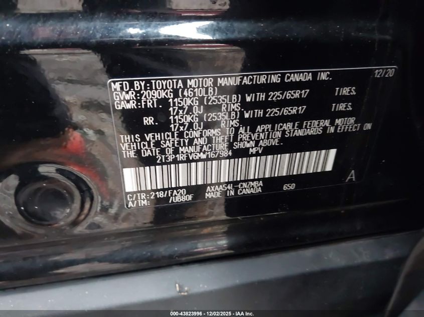2021 TOYOTA RAV4 2021 року Бензин, 2.5, Полный привод, vin - 2T3P1RFV6MW167984 из США