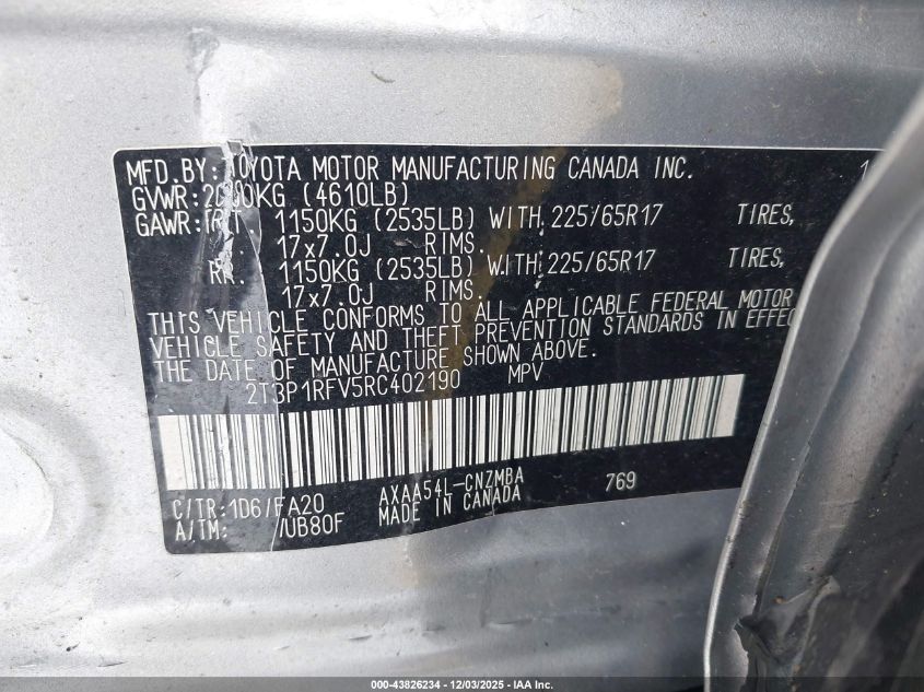 2024 TOYOTA RAV4 2024 року Бензин, 2.5, Полный привод, vin - 2T3P1RFV5RC402190 из США