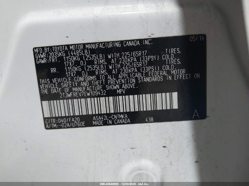 2014 TOYOTA RAV4 2014 року Бензин, 2.5, Передний привод, vin - 2T3WFREV7EW109432 из США