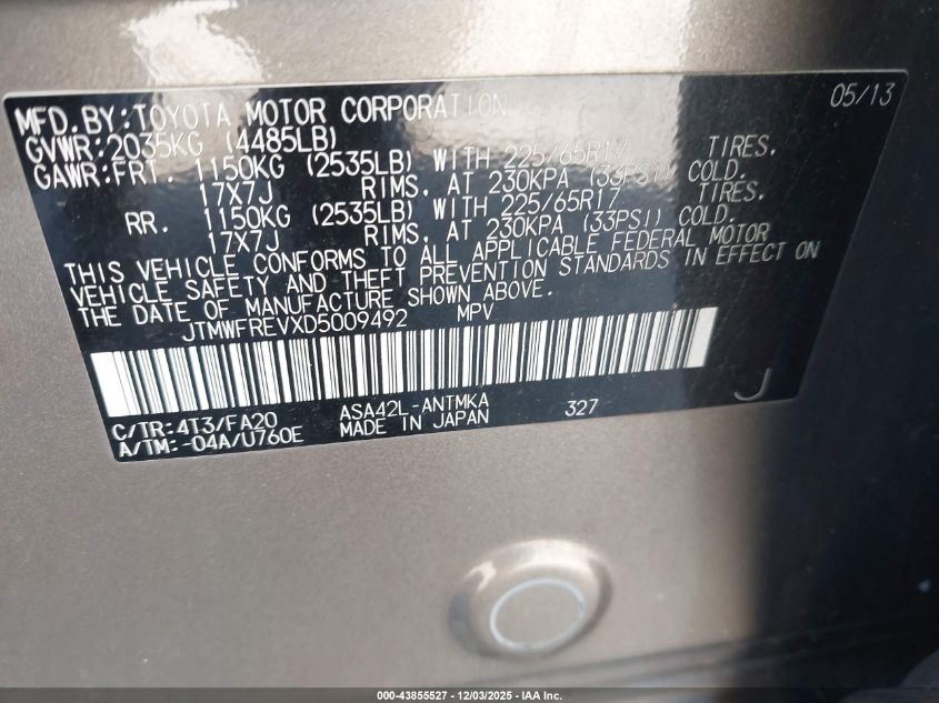 2013 TOYOTA RAV4 2013 року Бензин, 2.5, Передний привод, vin - JTMWFREVXD5009492 из США