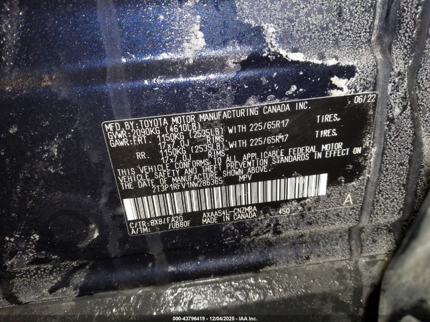 2022 TOYOTA RAV4 2022 року Бензин, 2.5, Полный привод, vin - 2T3P1RFV1NW286365 из США