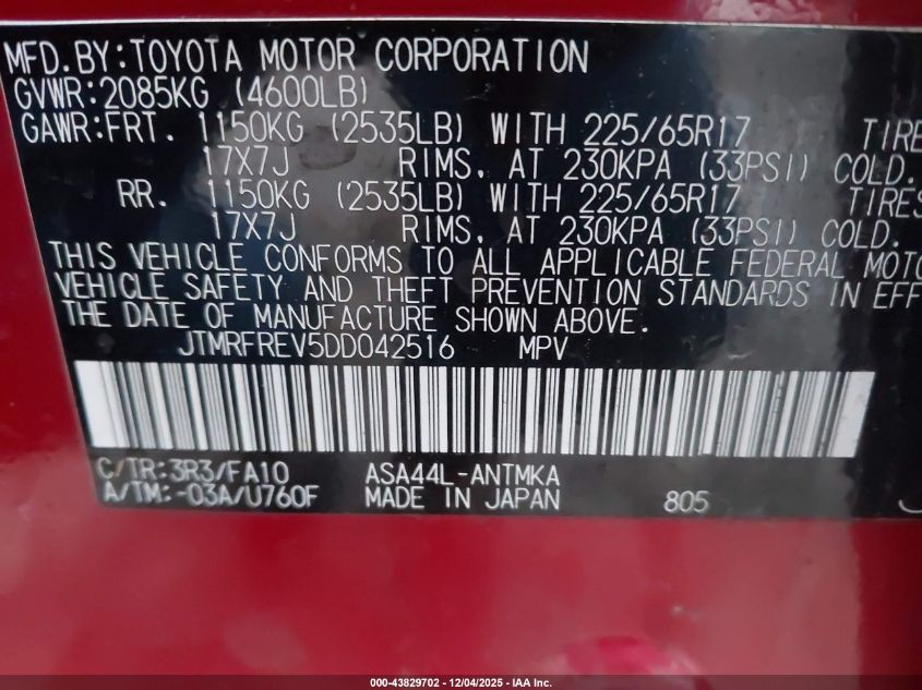 2013 TOYOTA RAV4 2013 року Бензин, 2.5, Полный привод, vin - JTMRFREV5DD042516 из США