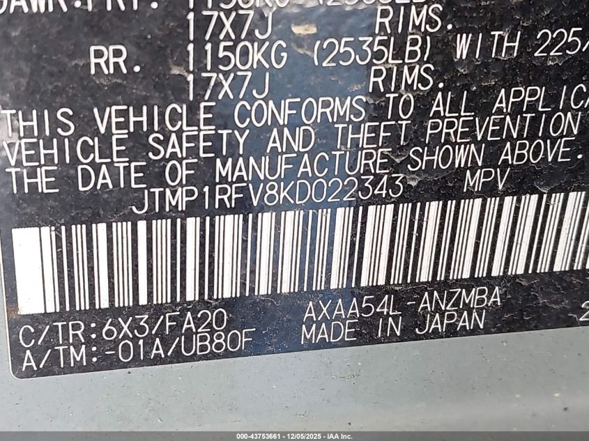 Цвет СерыйЦилиндры 4Привод Полный приводVIN JTMP1RFV8KD022343Состояние Заводится и едет (проверено)Повреждения Правая сторона AutoRIA