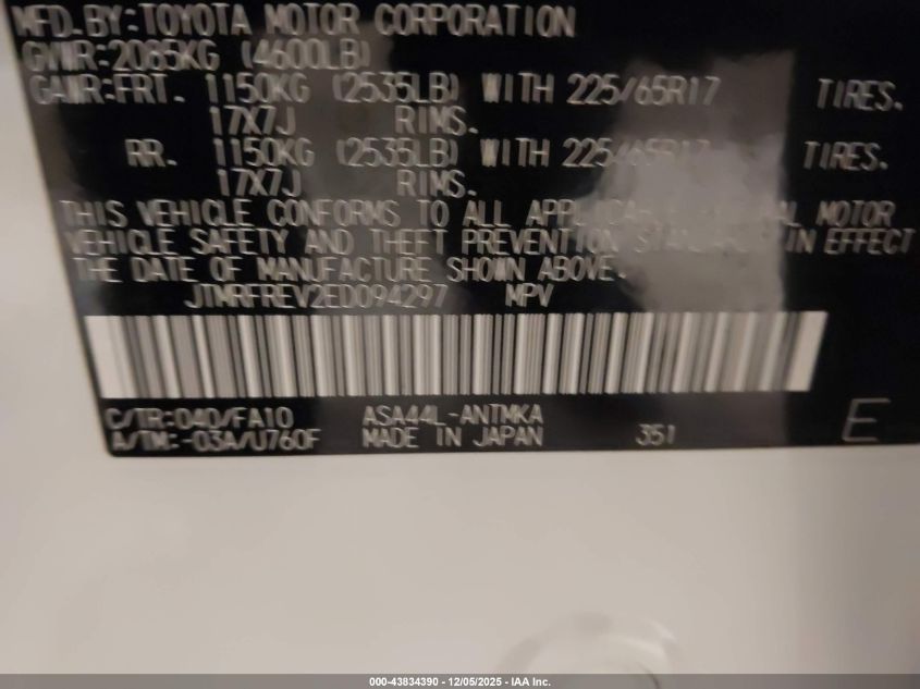 2014 TOYOTA RAV4 2014 року Бензин, 2.5, Полный привод, vin - JTMRFREV2ED094297 из США