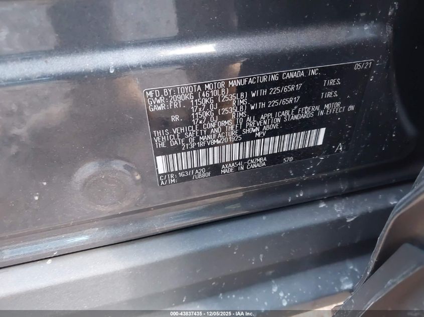 2021 TOYOTA RAV4 2021 року Бензин, 2.5, Полный привод, vin - 2T3P1RFV8MW201925 из США