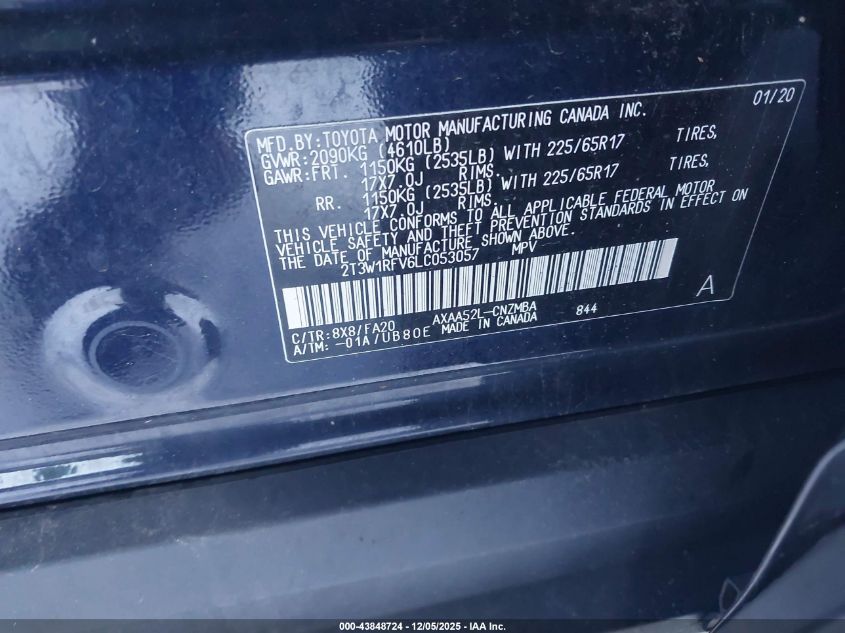2020 TOYOTA RAV4 2020 року Бензин, 2.5, Передний привод, vin - 2T3W1RFV6LC053057 из США