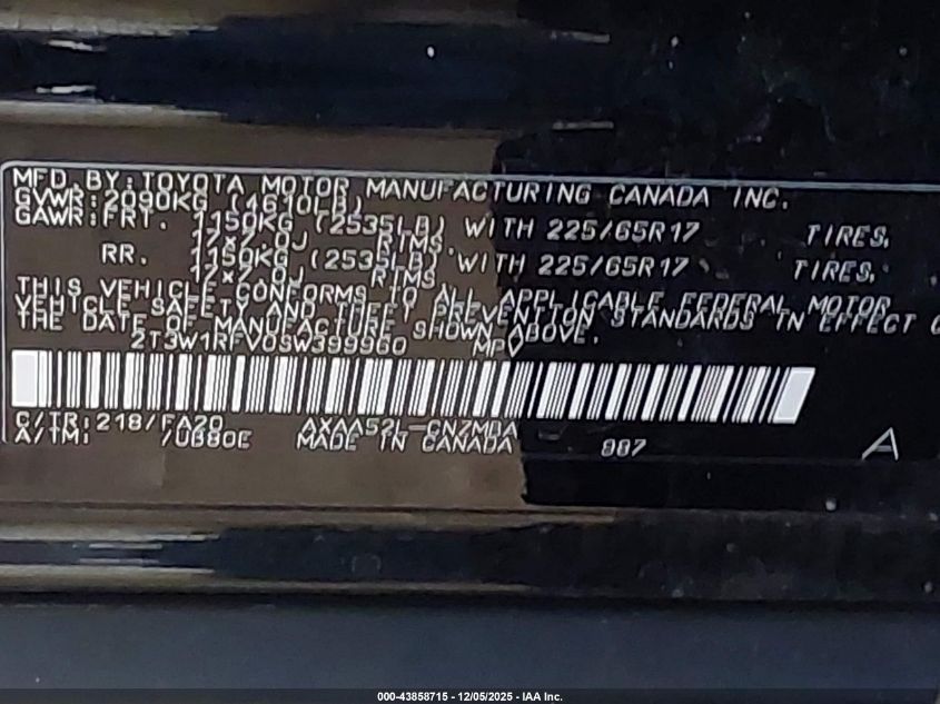 2025 TOYOTA RAV4 2025 року Бензин, 2.5, Передний привод, vin - 2T3W1RFV0SW399960 из США